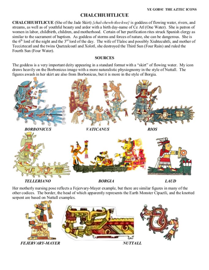 Check out this example of the caption/model page for CHALCHIUTLICUE, the Jade Skirt.