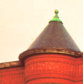 The photo on the left is a close-up of the carving of four hands with bells from which we took the name of our house. In fact, I found out several years ago from the current owner that the original builder had indeed named it the Four Belles—for his wife and three daughters. The Second Empire wedding cake house on the right was owned by Lewis Kleiman, the guy who took my publicity shot mentioned before. I occasionally helped him work on restoring the place, like stripping woodwork and such—but it was like spitting in the sea.