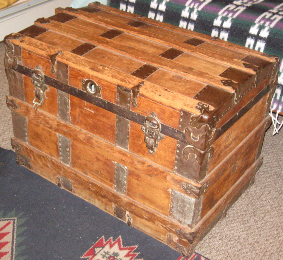 And to return to my salvage activities: Another piece I still have is a trunk I found in 1974 on like the sixth floor of the wracked-out Iowa building also previously mentioned. I had to remove its shredded canvas covering and live with the raw wood, but after all these decades, it still holds my blankets and linens. Like that beautiful building, it has survived!