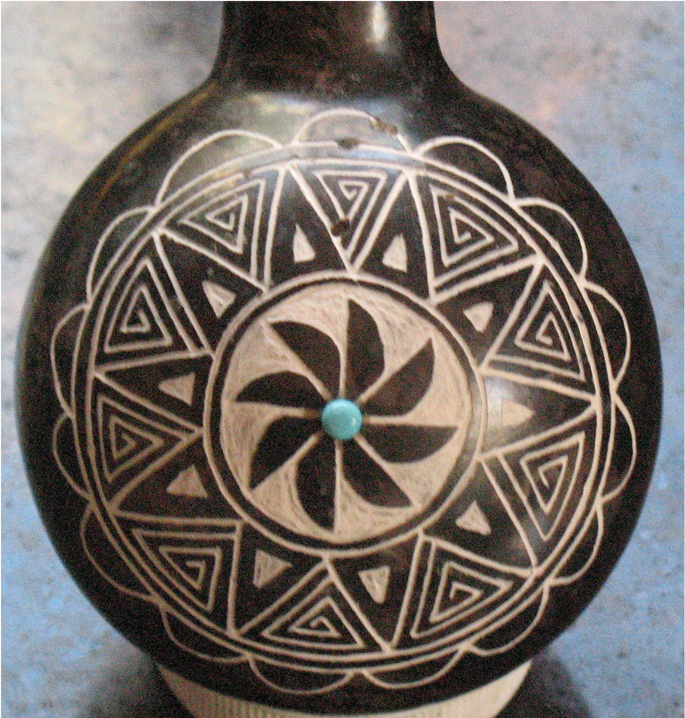 The Morning Star was also a Mississippian culture hero referred to as Birdman, and imagery of him with wings and clawed feet like the Maya Chak Ek’ is found in rock art, shell gorgets, and copper ornaments throughout the Mississippian area. In the mythologies of later tribes, he’s a prominent deity/hero: Apisirahts for the Blackfoot and either male or female deities for the Iroquois, Wichita, Pawnee, Ojibwe, Crow, and other tribes. In the Southwest, the Tewa have a Morning Star god called ‘Agojo so’jo (Big Star), a messenger of the Sun associated with warfare. Obviously, for at least a thousand years, the Morning Star has been a mighty myth of the Americas, and it’s still revered among Native American artists.