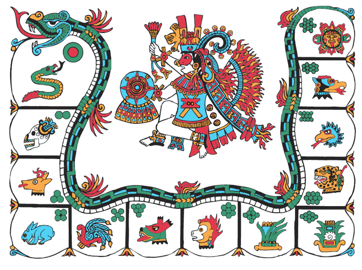 9-ce coatl – one snake Published December 4, 2013 at 1200 × 895 in TONALAMATL ← Previous Next → Aztec Calendar – Snake trecena – Tonalamatl Balthazar Share this: Click to share on X (Opens in new window) X Click to share on Facebook (Opens in new window) Facebook Click to email a link to a friend (Opens in new window) Email More Click to share on Pinterest (Opens in new window) Pinterest Like Loading...