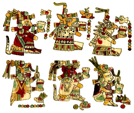 As far as patrons of the Eagle trecena go, these various naguals of Tezcatlipoca don’t seem to contribute much to the trecena’s themes of Supremacy/War and Lofty Vision. Maybe Ixtlilton and the jeweled beast really were included merely to reflect Xochiquetzal’s romantic history with Tezcatlipoca. After all, that would tie in well with her divine sexuality and beauty. Dr. Paquin also suggests that Ixtlilton/Tlaltetecuin (and the jeweled beasts) are acting as cheerleaders for Xochiquetzal, dancing to ward off harmful influences and maintain her high position of supreme strategist in oversight of the game of life-death-resurrection.