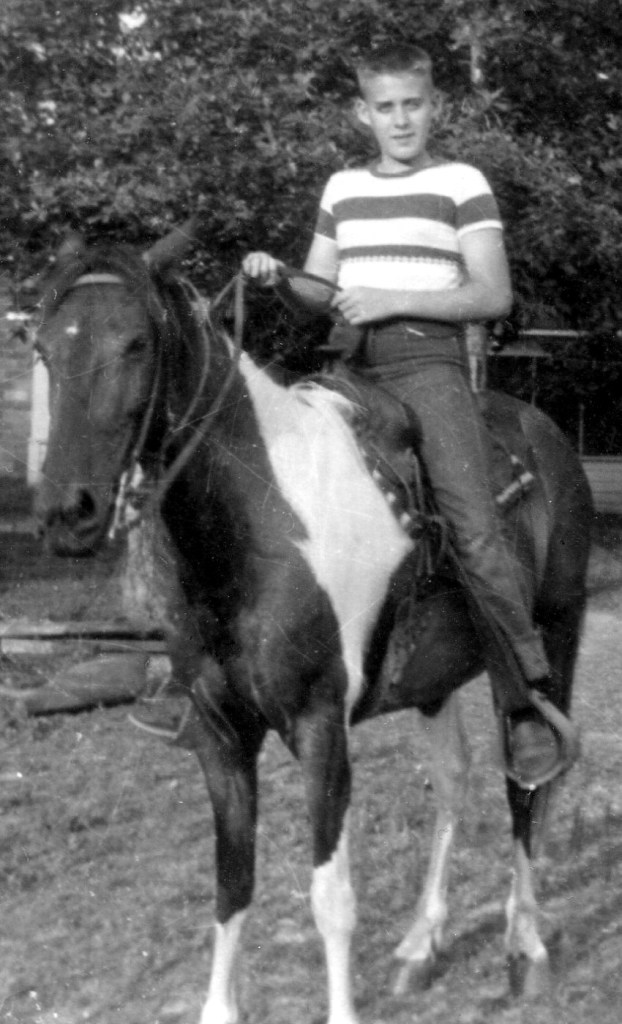 The next chapter of KIDSTUFF I’m calling CREATIVE JUICES for reasons that will be obvious when you read it. The above equestrian picture of me in the late summer of 1956 is a great rarity. At my sister’s urging, I agreed to mount her horse for a picture—and dismounted a moment later. I’ve never been a fan of sitting on large animals.
